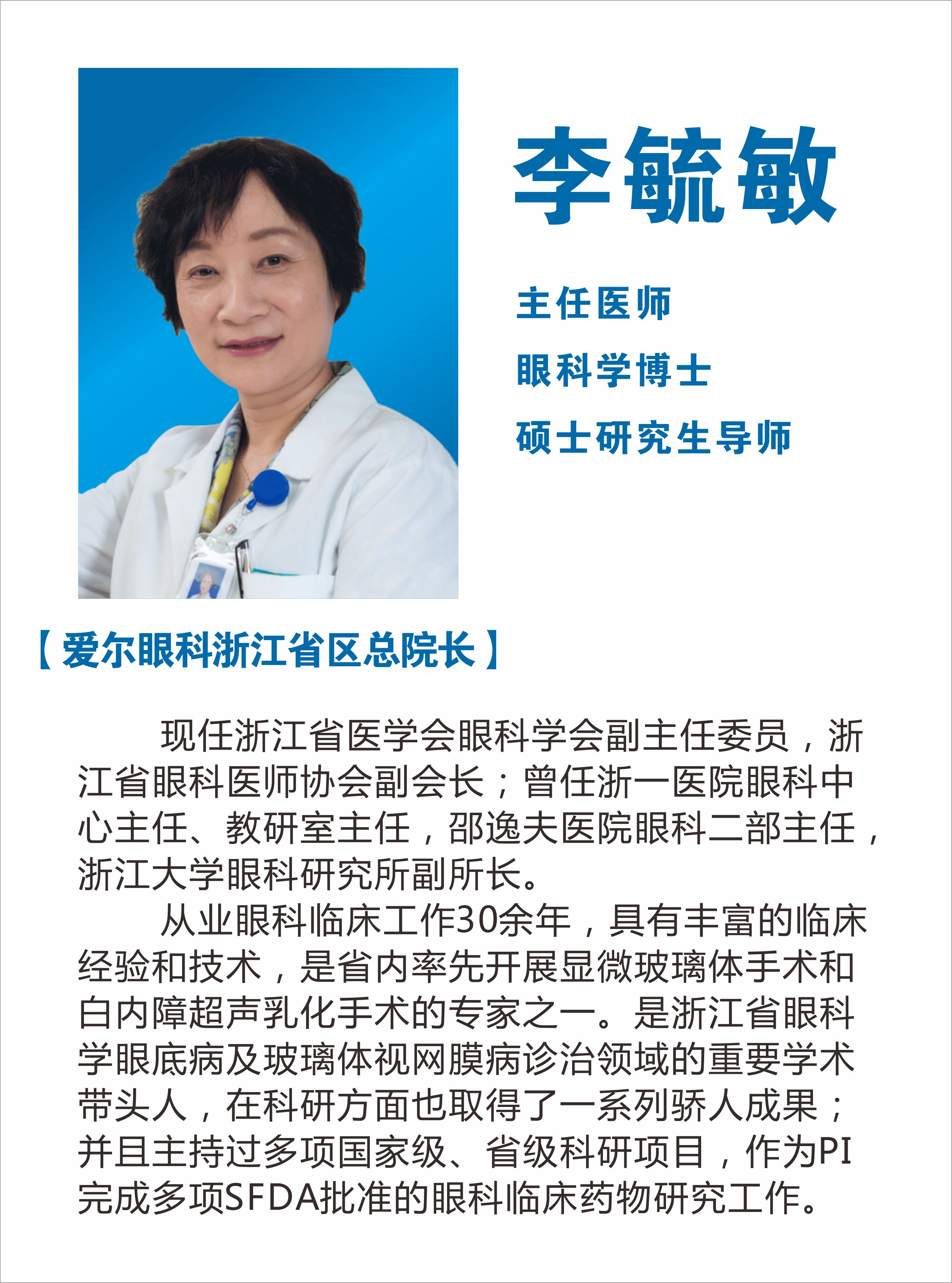 愛爾眼科浙江省區(qū)總院長,眼科學博士 ,碩士研究生導師,曾任浙一醫(yī)院眼科中心主任/浙江大學眼科研究所副所長,擅長白內障/眼底病等老年性眼病。是浙江省眼底病診治領域的重要學術帶頭人